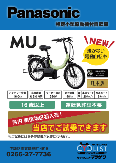 サイクリストマツザワは、勇壮な御柱祭で有名な諏訪大社のお膝元、下諏訪町の煌めく諏訪湖のほとりにある、昭和三十七年創業の自転車専門店です。東洋のスイスと称される諏訪の緻密な技術は、生糸産業に始まり、世界一の時計そしてオルゴールを作り出しました。その繊細で、妥協のない手仕事の伝統は、今もこの街に脈々と息づいています。そして今、諏訪からサイクルスポーツを通して世界に発信しようとしています。 サイクリストマツザワは、確かな技術に基くメンテナンスと、一生涯の無料点検で安心と機能美とをお届けいたします。