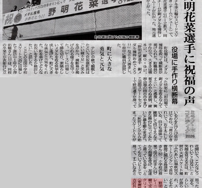 • 野明 花菜さんが銅メダル獲得した新聞記事に当店コメントが載りました 3月 1, 2026